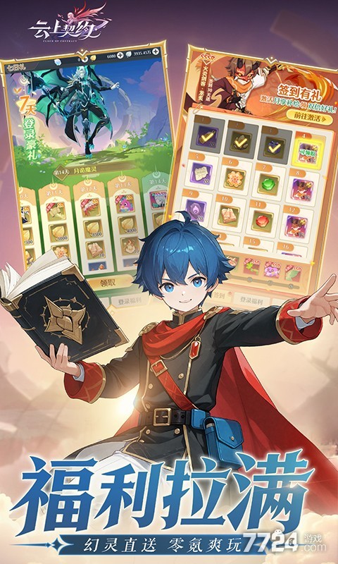 《云上契约》是一款异世界日系幻想风RPG放置手游。剑与魔法的魔幻大陆,在远古时期,强大的龙族率领其他生物包括人类对大陆进行开拓与发展。到了现代,艾瑞利亚大陆变成生机勃勃的丰饶之地,不同地貌生存着不同的精灵与魔物,但龙族却在岁月中不见了踪影。阿斯塔亚王国的冒险王罗布诺,在云端发现消逝许久龙族的踪迹,此举激发了举国的寻龙狂潮。国王便立下契约称率先找到龙的冒险家,便能获得王国的最高荣誉——冒险王,至此开启了一段“大冒险时代”
